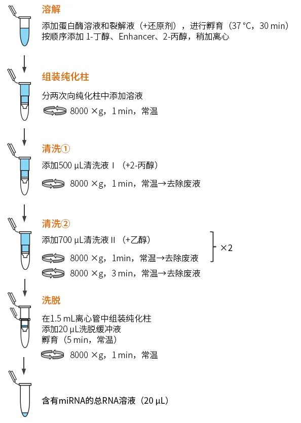 纯化细胞外囊泡(EV)用miRNA提取试剂盒可通过纯化柱从外泌体等EV中提取包含miRNA在内的总RNA。本产品仅需少量缓冲洗脱液(20 μL)即可回收高浓度的RNA,因此也适用于二代测序(NGS)等。